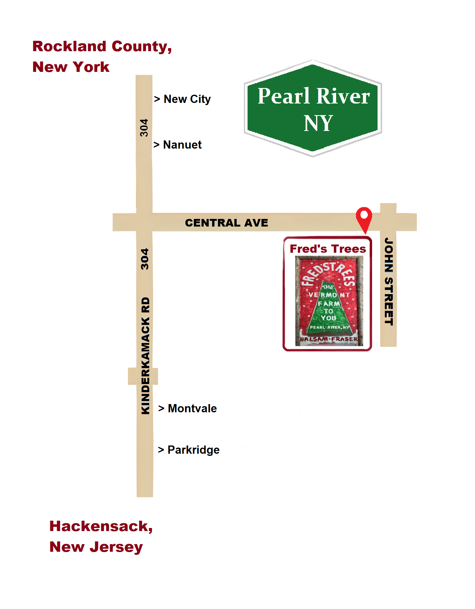 We also have many happy Christmas tree customers in Northern New Jersey that follow the “Not Get Lost Route” of Kinderkamack Rd. to Pearl Road to Central Ave. East to our tree lot!